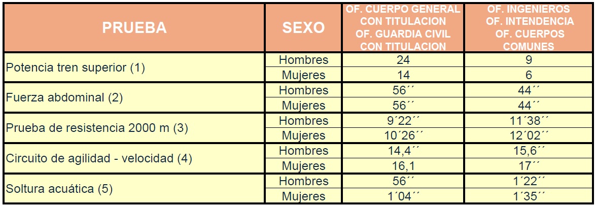 Las pruebas de aptitud física a superar dependerá del Cuerpo al que oposites: