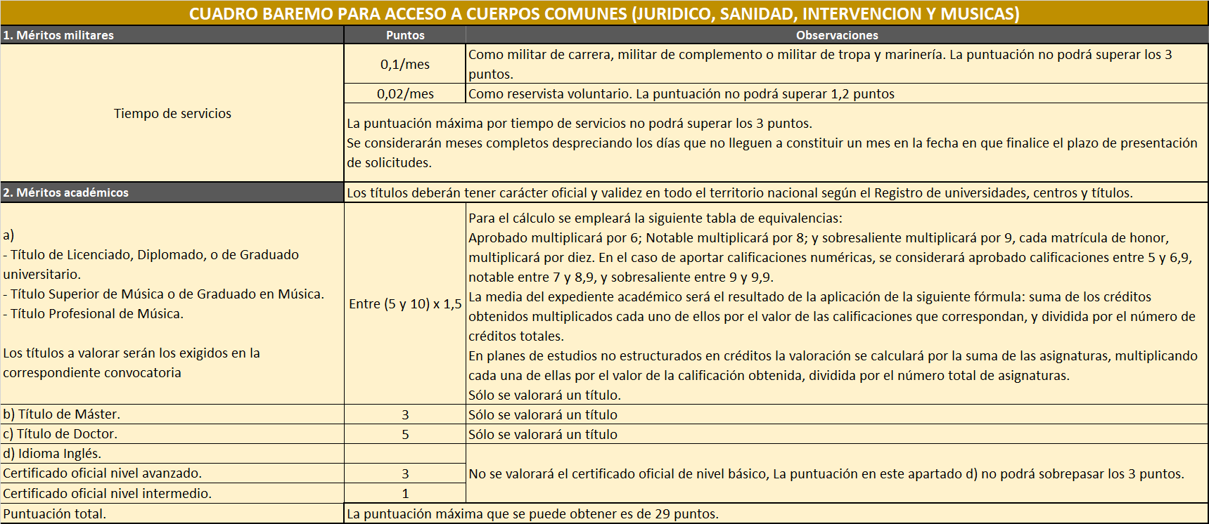 - Descarga cuadro baremo Oficiales de los Cuerpos Comunes ( pdf - 0,09 MB )