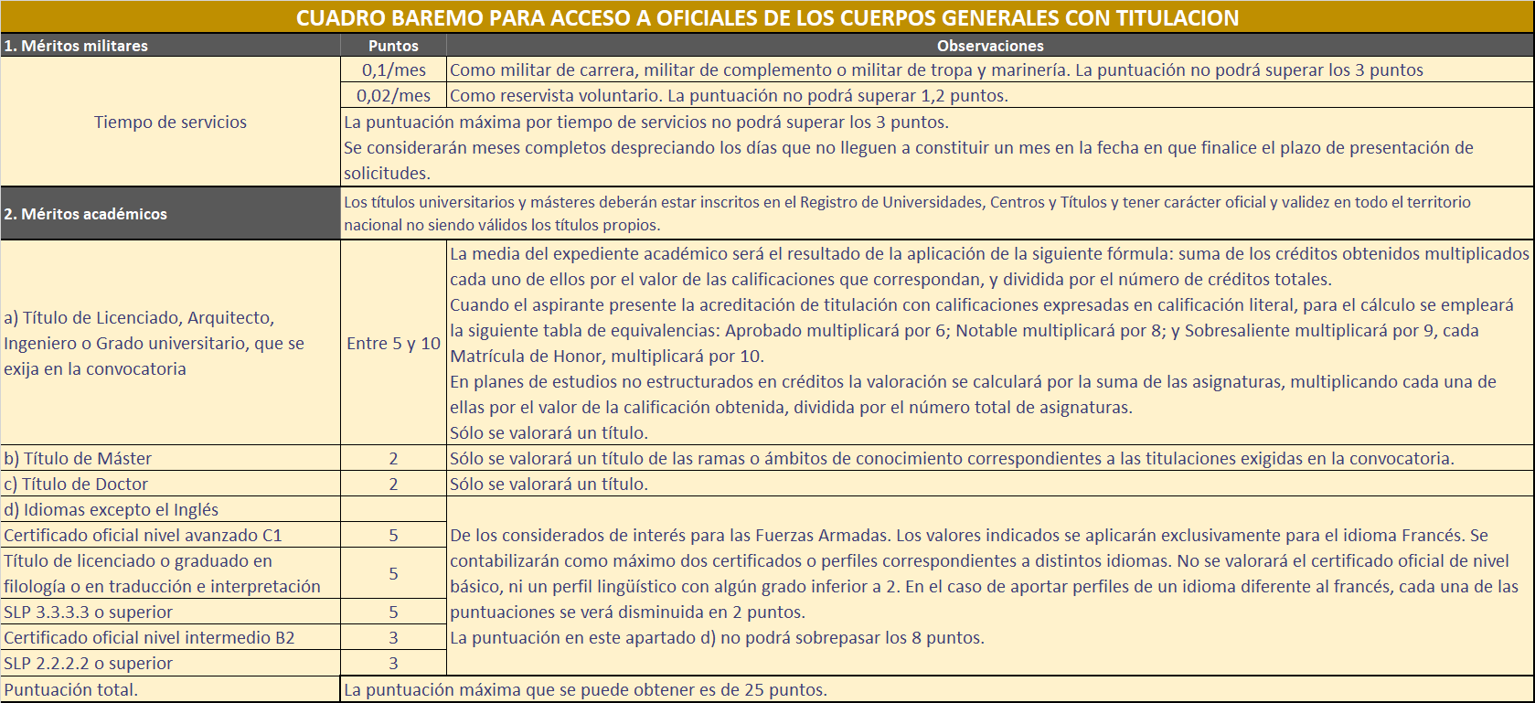 - Descarga cuadro baremo Oficiales de los Cuerpos Generales (con titulación) ( pdf - 0,07 MB )