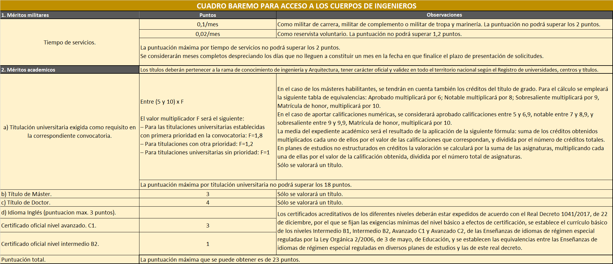 - Descarga cuadro baremo Oficiales de los Cuerpos de Ingenieros ( pdf - 0,09 MB )