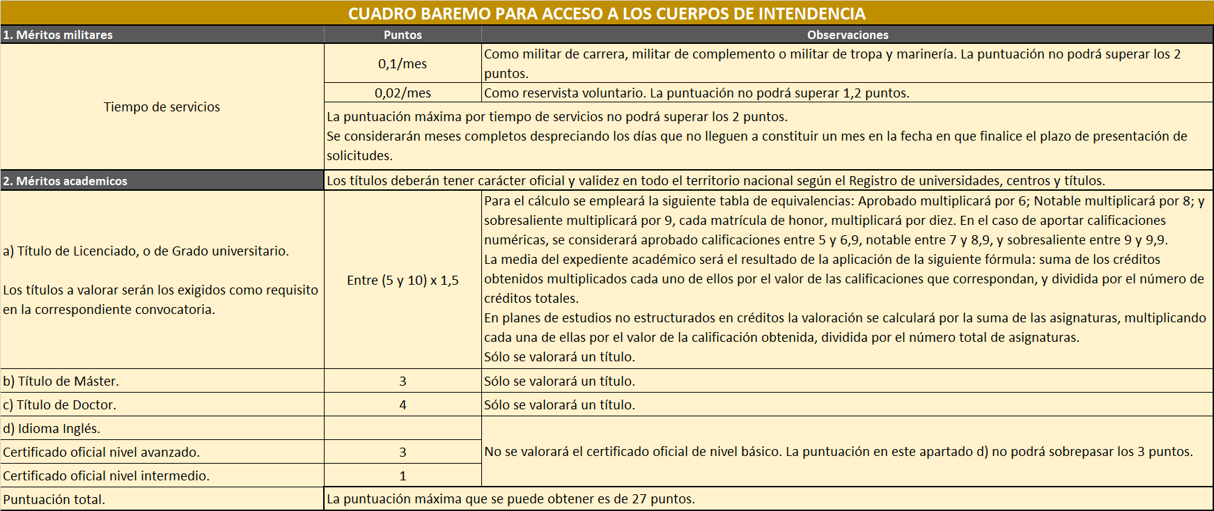 - Descarga cuadro baremo Oficiales de los Cuerpos de Intendencia ( pdf - 0,09 MB )