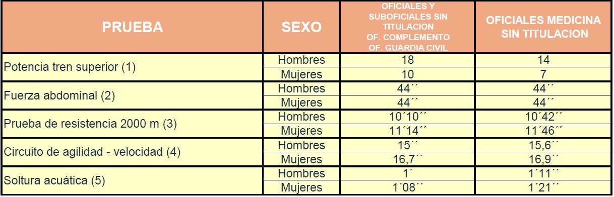Las pruebas de aptitud física a superar son: